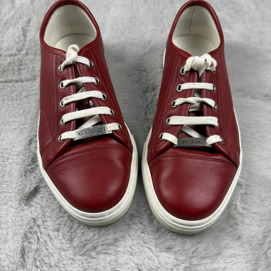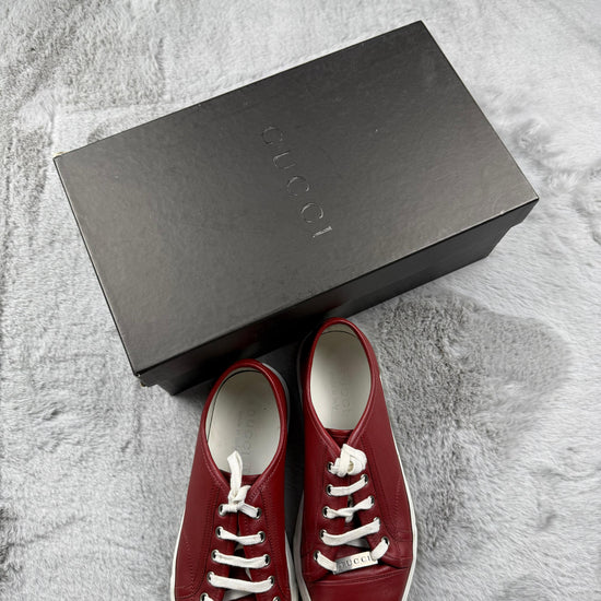 🔥 Sneaker Gucci uomo in pelle rossa – pezzo iconico del lusso heritage italiano con dettagli metallici sui lacci. Queste scarpe incarnano l'eleganza senza sforzo di Gucci, perfette per chi cerca autenticità e stile.